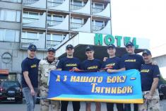 Теперь мы все каждый день сможем видеть и гордиться красивым стягом на высокой мачте гостиницы «ГРАДЕЦКИЙ», который закрепили представители Черниговской команды Всеукраинского объединения «Свобода».