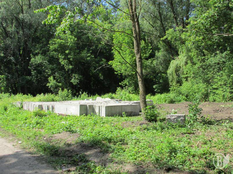 Работники «Укрсивербуд» огородили место будущей застройки бетонными плитами, прямо под детской площадкой. Рубить деревья пока не решились, однако, как оказалось, имеют на это законные основания.