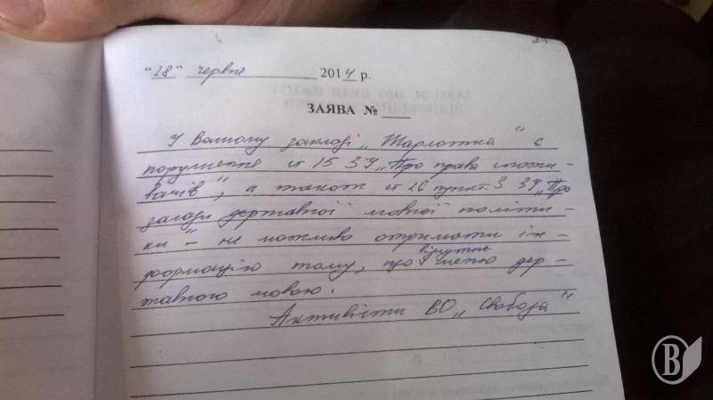 "У світлі останніх подій мовне питання не втрачає своєї актуальности, а, навпаки, набуває нового значення. Події на сході – це наслідок відсутности адекватної гуманітарної політики. Адже 80% інформаційного простору фактично окуповано російською мовою. Тому акція "Мовний контроль" – це наш спротив русифікації міста. Аналогічні заходи будемо проводити й надалі", – зазначив свободівець Ігор Гавриленко.