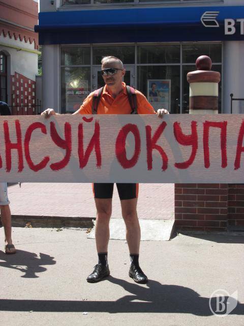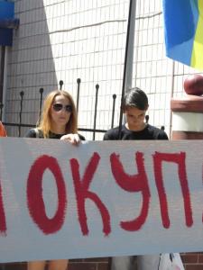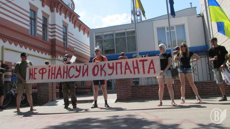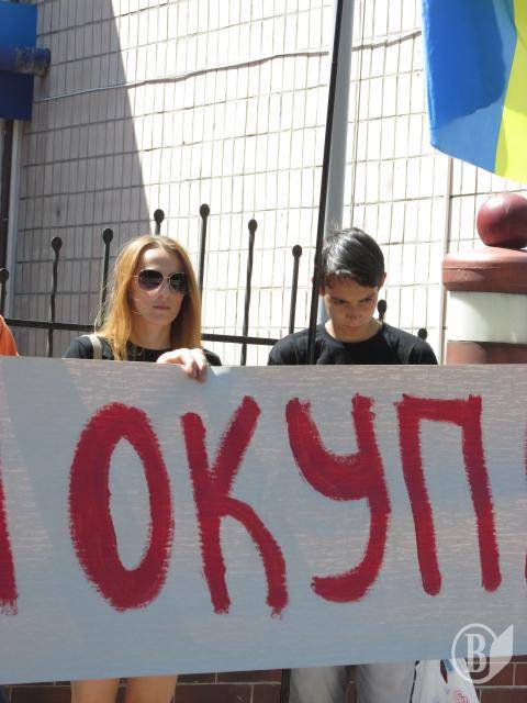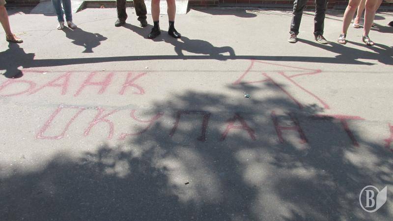 Это уже не первый подобный протест в Чернигове: раньше пикетировали и повреждали отделение Сбербанка России.