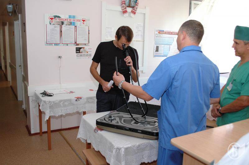 «Це надсучасний фіброколоноскоп, який дає можливість подивитися товстий кишечник пацієнта, виявляти на ранніх етапах злоякісні утворення та запальні процеси. Цей апарат значно покращить якість та швидкість роботи лікаря-проктолога», - зазначив головний лікар.