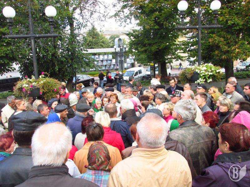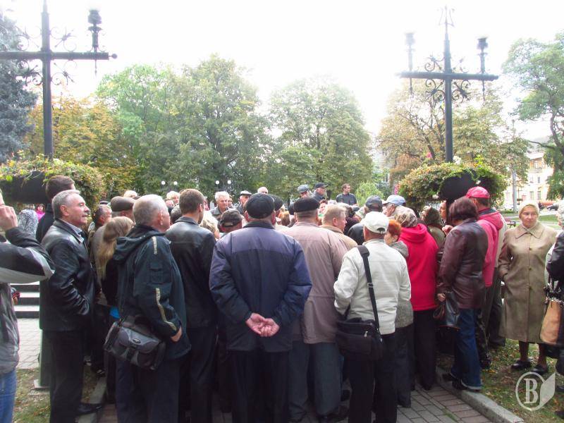 Близько 50 ошуканих вкладників банку "Демарк" зібралися сьогодні перед початком сесії Чернігівської міськради.