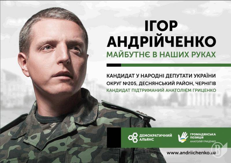Как и Вы, я - черниговец, который хочет достойной жизни, борется с коррупцией, отстаивает европейские ценности и защищает страну в зоне АТО.