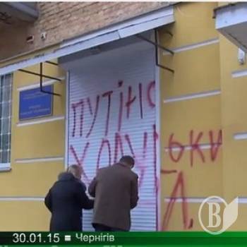 В ніч з 29 на 30 січня невідомі розмалювали приймальню народного депутата Владислава Атрошенка у Чернігові.