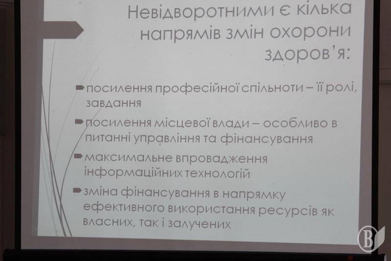 «У нас медиків найбільше в Україні за показником розрахунку на тисячу населення. Питання – будемо скорочувати? Всі дружно скажуть – ні! Тоді запитання – а зарплату де брати на таку кількість, якщо нам необхідно буде все модернізувати, оптимізувати під європейські стандарти. Дуже хотілося б, щоб були пропозиції щодо оптимізації», – резюмував Журман.