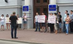 Уже в 10 часов около 50 активистов «Народного контроля» во главе со своим вожаком проводили пикет под городским отделом милиции.