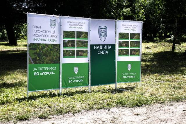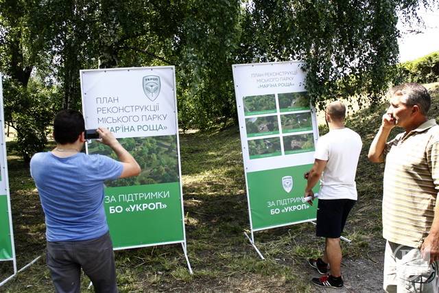 Кандидат в народные депутаты Геннадий Корбан вместе с друзьями нардепами Андреем Денисенко и Виталием Куприем представили черниговским журналистам проект развития парковой зоны Марьина роща.