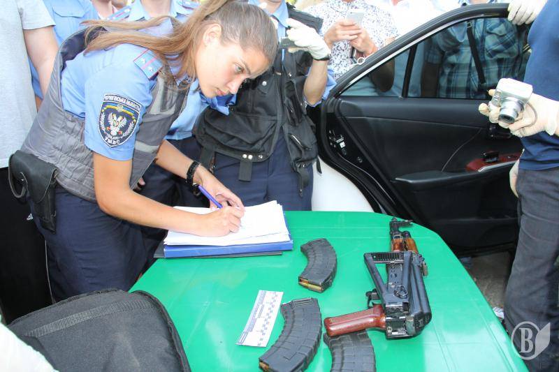 Силами работников милиции автомобиль был взят в плотное кольцо с целью делания невозможным любого доступа посторонних лиц. На место события прибыли народные депутаты Украины. От одного из них было получено письменное заявление о том, что в автомобиле есть несколько единиц огнестрельного оружия. Эта информация была внесена в Единый реестр досудебных расследований по ч. 1 ст. 263 Уголовного кодекса Украины (незаконное обращение с огнестрельным оружием).