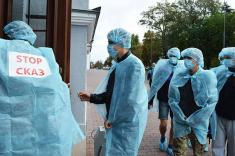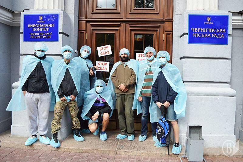 Внешне те, которые собрались около мэрии, больше напоминали эпидемиологов – медицинские халаты, шапочки.