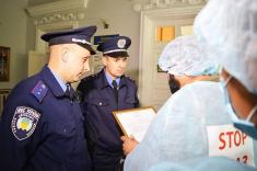 К участникам акции вышел первый заместитель городского председателя, кандидат в мэры от ВО «Батькивщина» Николай Миргородский. И начал шутить, что проверялся и, вроде бы, не болен бешенством.