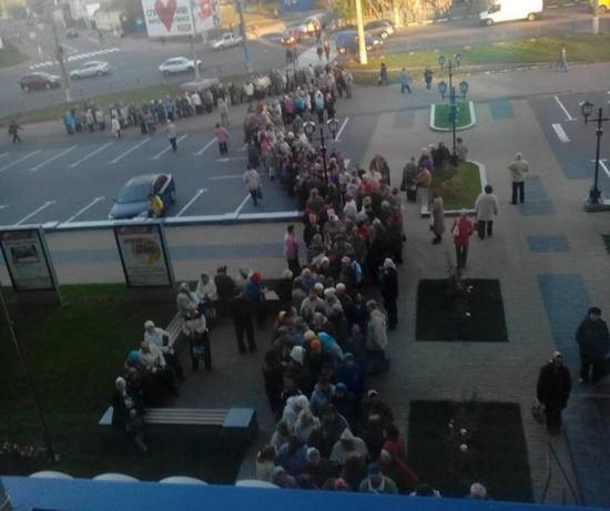 «Добрий ранок, або який вже є! Прийшовши на роботу та побачивши таке, вже починаєш сумніватися. Штучно зроблений ажіотаж, по-іншому це назвати не можна, особливо, коли охоронець розповідає, що чергу займали з другої години ночі.»