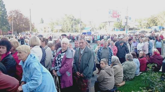 Чернігівці учергове збожеволіли від шари. Це фото не відповідає дійсності - застаріло. Бо вже тисяча людей стоять у чергах за пенсійними довідками. Вони дадуть змогу їм одержати фінансову допомогу від мерії, яка начебто виділила на це 20 мільйонів гривень.