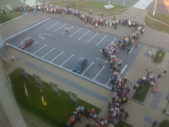 Черниговцы в очередной раз обезумели от шары. Это фото не отвечает действительности - устарело. Потому что уже тысяча людей стоят в очередях за пенсионными справками. Они дадут возможность им получить финансовую помощь от мэрии, которая вроде бы выделила на это 20 миллионов гривен.