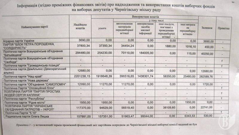 Нам стали відомі дані про виборчі фонди політичних партій, чиї представники балотувалися до міськради та кандидатів у мери Чернігова.