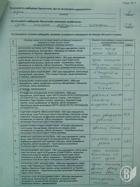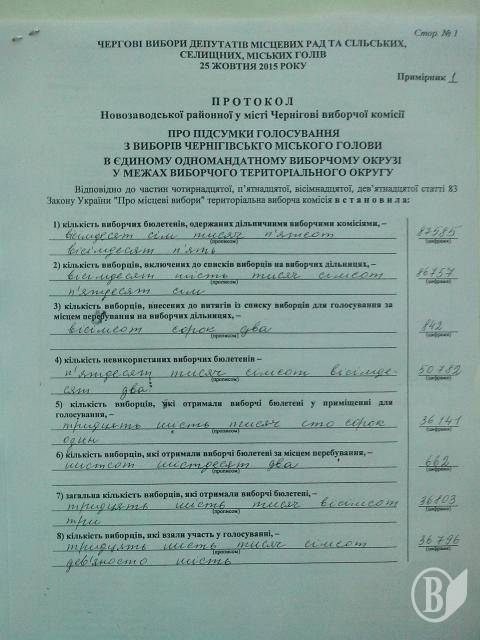 Детальніше про розподіл голосів на «мерських» виборах у Новозаводському районі – у копії протоколу, фото якої вміщено нижче.
