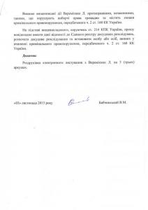 У зв'язку з цим автор заяви зажадав, керуючись ст. 214 Кримінально-процесуального кодексу України, внести ці дані до Єдиного реєстру досудових розслідувань, почати досудове розслідування та встановити громадянина або громадян, винних у кримінальному правопорушенні.