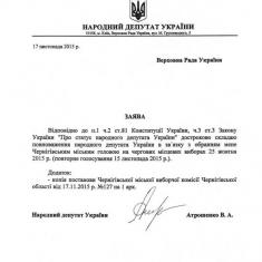 Атрошенко написал заявление о сложении полномочий нардепа