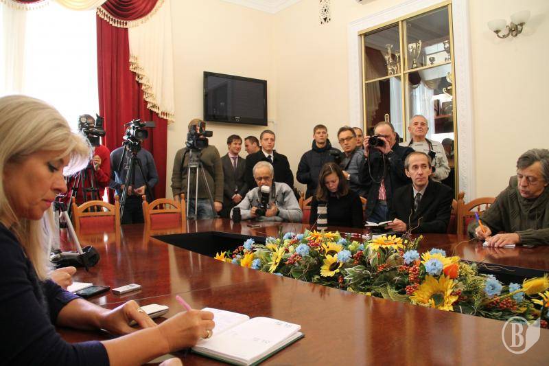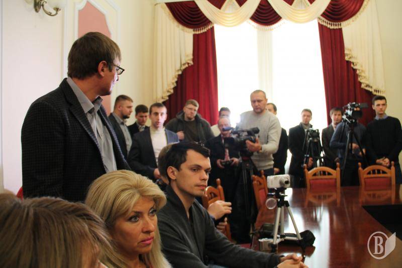 Відчувалося, що новий міський голова неабияк нервував, але очі були спокійними. Ніби боєць перед битвою. «Домашніх заготовок» тримав у рукаві немало, не знав лише з якої розпочати. І тут В. Атрошенко «згадав», що представляти його нікому, і запропонував у модератори брифінгу нашого колегу, який постраждав під час конфлікту з його охороною, Владислава Савенка. Широким жестом. Кого й могла ця пропозиція збентежити, але не такого «медіа-зубра», як наш колега. Він подякував і перевів захід у формат прес-конференції та й сам почав задавати запитання.
