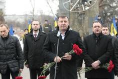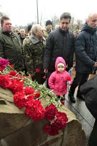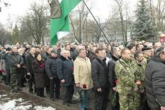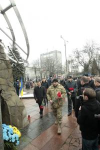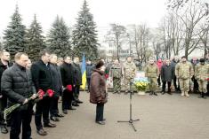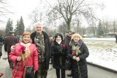 Учасники урочистого мітингу вшанували загиблих воїнів хвилиною мовчання та поклали квіти до пам'ятного знаку землякам, які загинули під час виконання військового обов'язку на території Афганістану.