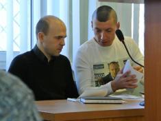 Сьогодні до суду він знову не прийшов, його інтереси представляв Олексій Кінебас. Проте, дійових осіб стало більше: додалися засновник газети Вадим Мусаханов та представник відповідача Олександр Гашпар.