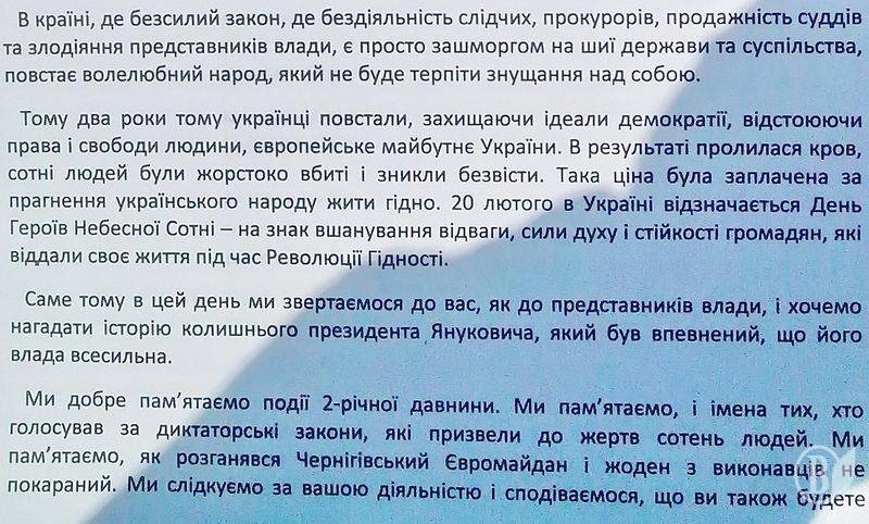 Свої вимоги термінових та рішучих реформ активісти оформили у відкриті листи до в.о. міського голови Чернігова, керівництва обласної прокуратури та Головного управління Національної поліції в області(ГУНП).