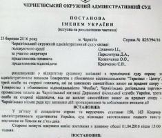 Об этом сказано в постановлении Черниговского окружного административного суда, которое привел перед сегодняшним заседанием городского совета президент Черниговской торгово-промышленной палаты Константин Иванов.