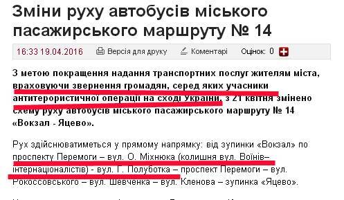 Не удивлюсь, если после такого проявления чуткости городского головы участники АТО захотят, чтобы 14-й в сторону Яцево проходил через перекресток улиц Горького и Родимцева, где проживает мэр.