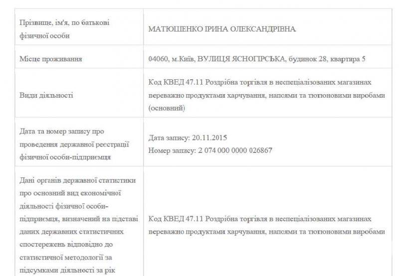 Владельцем МАФов, по словам Гашпара есть ФОП Матюшенко И.О., который начал свою деятельность в ноябре 2015 года.