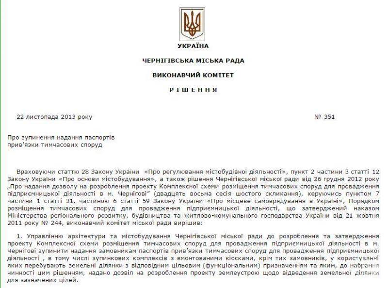 В Чернигове устанавливаются новые киоски, так называемые МАФы, вопреки решению исполкома, который запрещает это делать.