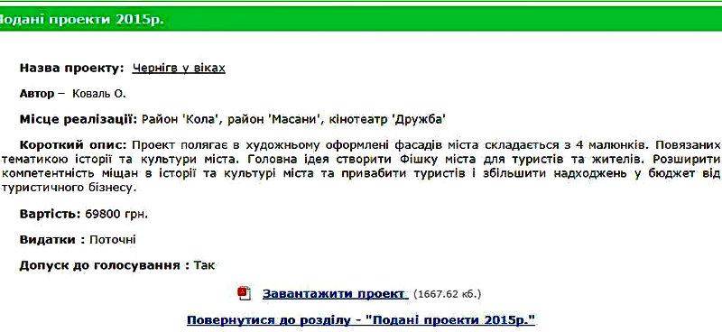Вона та її партнерка Марія Панкратьєва, (які разом в свій час були в лавах чернігівського осередку "УДАРу"), подаючи до міської ради свій проект, прописували в ньому, що в разі його перемоги доступ до участі в проекті стане вільним кожному бажаючому (підкреслено жирним курсивом).