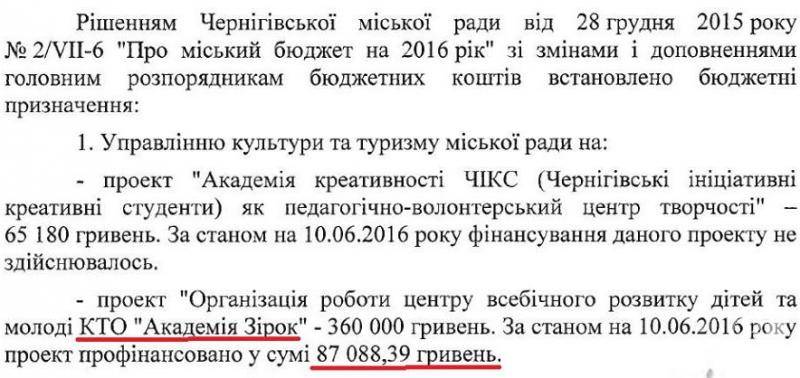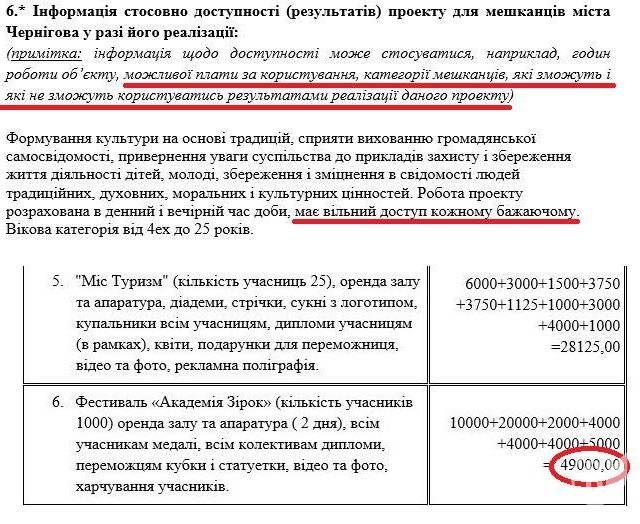 Також в своєму проекті вони прописували, що, наприклад, витрати на проведення фестивалю "Академія зірок", покриються за рахунок міського бюджету і будуть включати: