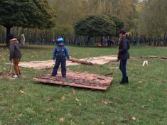 Еко-активісти на чолі з Сергієм Безбородьком влаштували для малечі конкурс малюнків на підтримку збереження парку та принесли із собою дерева, які збирались висадити на галявині. Поза тим, люди були налаштовані більш рішуче і чекали приводу для початку активних дій. Поки всі думали, що далі робити, найактивнішими протестувальниками виявилися діти, які катали по землі дерев’яні колоди.