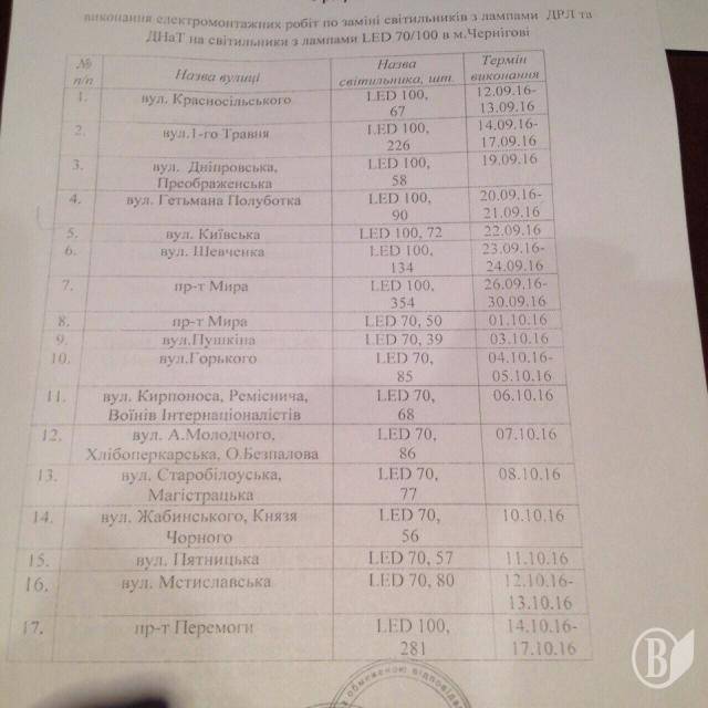 26.08.2016 На вулицях Чернігова засяють світлодіоди по 100$ штука