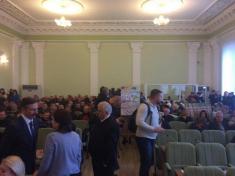 Оскільки очікувався протестний мітинг жителів вулиці Пухова і їхня присутність під час засідання, директор «УкрСіверБуду» Віктор Вереша привів до міськради своїх робітників і заповнив ними залу міськради.