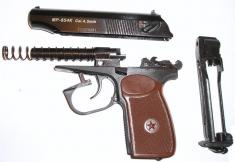 Предмет, схожий на пістолет, в напіврозібраному стані, з маркуванням на затворі «МР 654К». І магазин для газового балончика з вуглекислим газом та кульками калібру 4,5мм