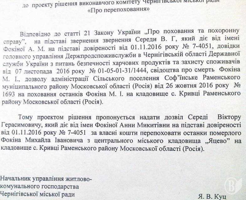 Незвичне питання розглядав сьогодні, 6 грудня, виконком Чернігівської міської ради: дозвіл на перепоховання з чернігівського цвинтаря Яцево аж в… село Московської області (РФ).
