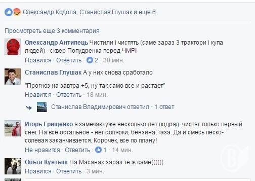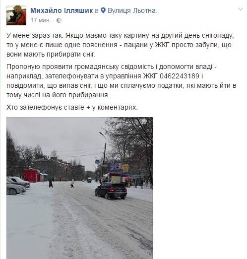 Відомий чернігівський блогер Михайло Ілляшик навіть запропонував «подякувати» комунальникам за «активне» прибирання снігу, зателефонувавши за номером управління ЖКГ міськради.