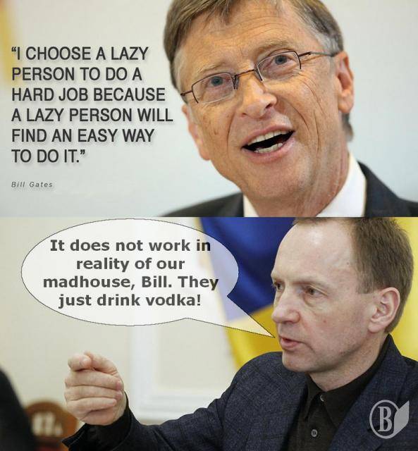 Або ж, скажімо, як міг би відповісти на кадрові ідеї Білла Гейтса міський голова Чернігова, котрий раніше в такій божевільні ще не працював і в якій деякі управління «лише горілку п’ють».