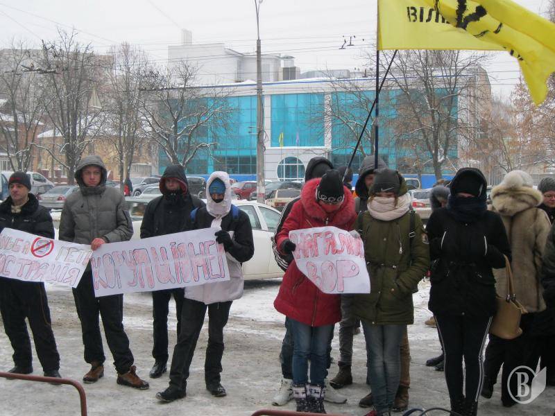 Акцію проводили під стінами вказаної державної установи, де засідала комісія з перевірки його діяльності.