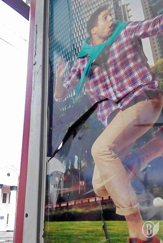 На популярних серед чернігівців зупинках громадського транспорту «Красний міст» (з обох боків вулиці) пошкоджено торгівельні кіоски.