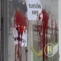 13.03.2017 Російський банк у Чернігові облили монтажною піною