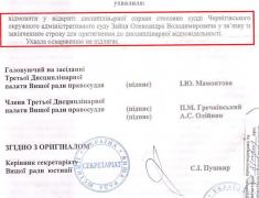 Постанова була винесена на підставі подання Чернігівської міської ради (юриста ради Павла Вовка).