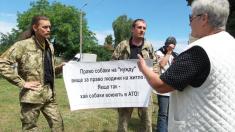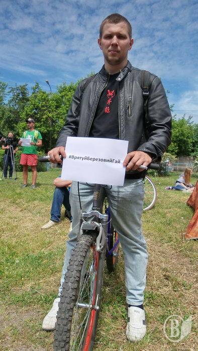 Втім, присутні і «протестуючі проти протесту», тобто ті, хто виступає за забудову в гаю. Вони вийшли з провокативними плакатами, мовляв, протестуючі проти забудови турбуються про інтереси собак.
