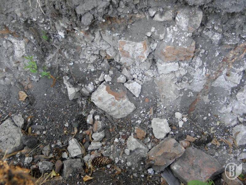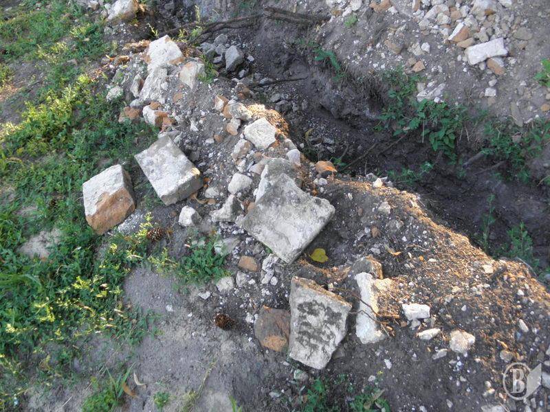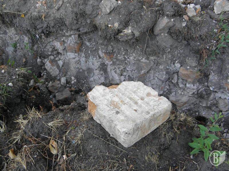 В тому самому місці, де в минулому році будівельники при викопуванні траншей пошкодили цегляні підмурки будинку мазепинської доби, нині знову видні давні стіни розрізані траншеєю і вивернуті цеглини «пальчатки».
