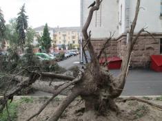 Тобто нема стержня, який би тримав. А крона в цих ялин велика і важка. Вона має велику парусність. Були сьогодні великі пориви вітру, і вони поклали дерево.