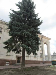 Певно, понищених раніше екскаваторами археологічних пам’яток їм видалося замало і вони знищили бульдозером ялину на газоні біля будівлі театру ім. Шевченка",- вибухнули такими і подібними звинуваченнями соціальні мережі.