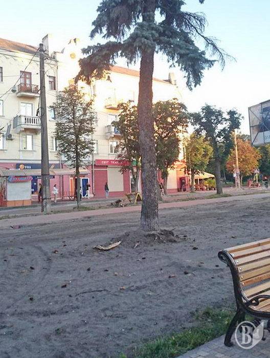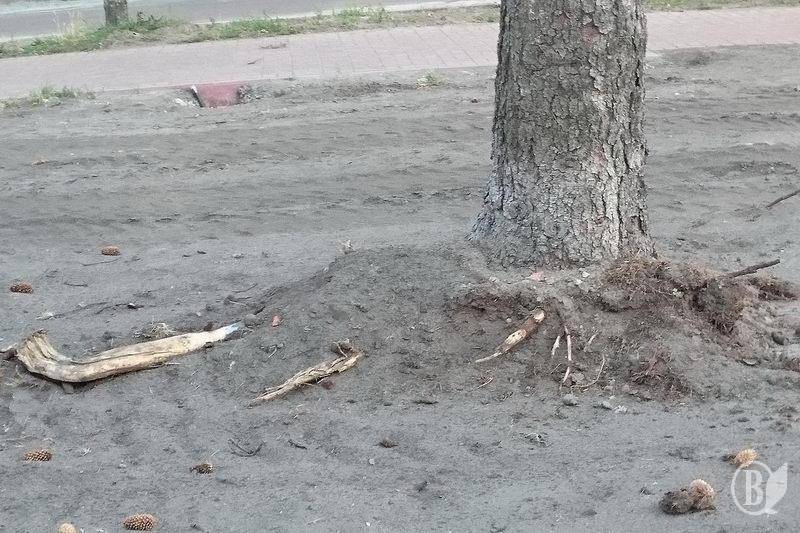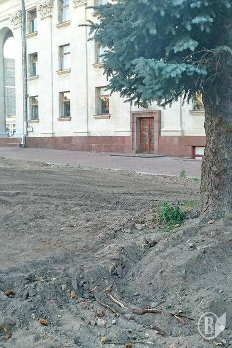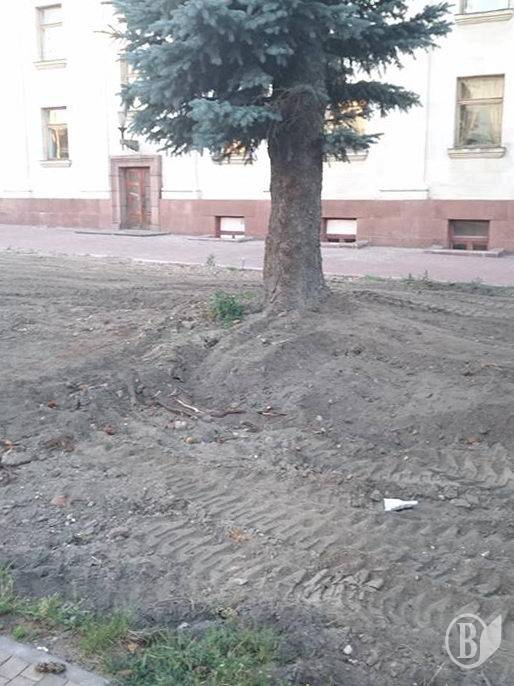 В такому разі, як кажуть у народі, «з якого переляку», чи то пак з команди якого «генія» реконструктори скверу Хмельницького зрізали верхній шар ґрунту на газонах, де ростуть ялини з такою поверхневою кореневою системою?