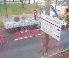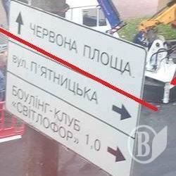 Знову навертіли справ і наламали дров «реконструктори» чернігівські… Ось такий дорожний знак встановлено на вул. Гетьмана Полуботка, котра виходить на Красну площу повз сквер Хмельницького.