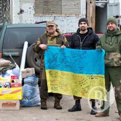 Так далеко від рідного міста, під обстрілом ворога, нашим волонтерам поталанило зустріти земляків з УДА. Взагалі було багато облич, багато звитяжних людей, зустрічі з якими вони дуже раді. Приїзд Волонтерського центру підняв усім настрій і бойовий дух.