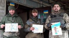 Діточки передали захисникам вітання з мирної землі: волонтери привезли від них малюночки. Бійці були дуже раді цим аркушикам паперу, наповненим теплом дитячої душі.